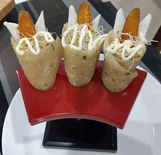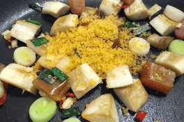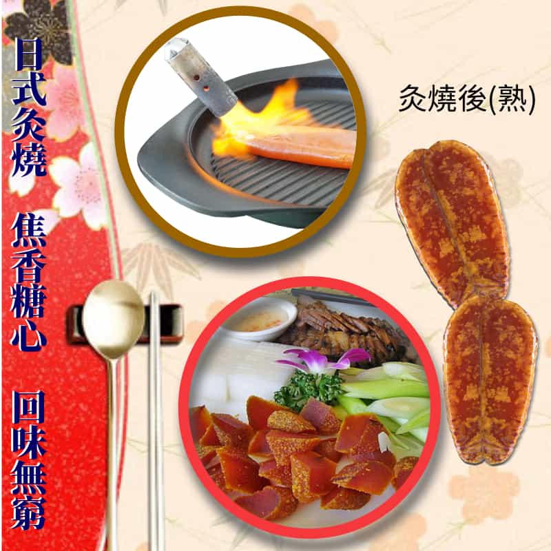 強火灸燒更逼出了烏魚子鹹香的美味,並且食用後回味甘甜,久久不散~ 陳家烏魚子獨特的料理法大大的提升了傳統烏魚子的品味與口感。